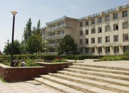Расположен западнее Евпатории, территория выходит на берег моря (в 30 м), корпуса 4-х этажные.