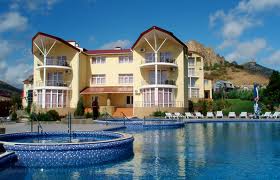 юго-западней Феодосии, в поселке Курортное, в 200 м от собственного пляжа, в 10 минутах езды от самого Коктебеля.
