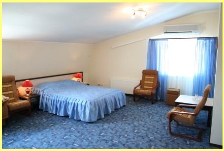 В номере: двуспальная кровать, раскладной диван (дополнительное место), прикроватные тумбочки, кресла, туалетный столик, зеркало, шкаф, телевизор (спутниковое ТВ), кондиционер, холодильник, телефон для внутренней связи, туалет, душевая кабинка, умывальник, полы с подогревом.