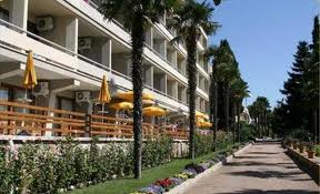 у подножия горы "Медведь" на берегу моря, в бухте между двумя мысами Плака и Тепелер, и занимает площадь 25 га. Закрытая охраняемая территория с двумя пятиэтажными корпусами. Великолепный рукотворный парк-памятник с реликтовой маслиновой рощей, возраст которой более двух веков: водопады, каскадные ручьи, живописные уголки с экзотическими растениями. Более 6500 хвойных деревьев и 200 видов растений, целебный морской воздух, невысокая влажность - создают уникальный микроклимат, благоприятный для лечения заболеваний органов дыхания, кровообращения и нервной системы в течение всего года.