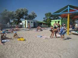 собственный в 500 м от центра, длиной - 90 метров, общей площадью-3600м2. Оборудован: теневыми навесами, беседками, топчанами. . Также находится медицинский пункт, спасательный пост для предоставления первой неотложной помощи