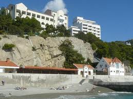 собственный мелкогалечный оборудованный (душевые кабинки, туалеты, кабинки для переодевания, лежаки, зонтики, шезлонги) с прогулочной набережной, в 300 м от корпуса №1, в 100 м от корпуса №2, в 50 м от корпуса №3, спуск по ступенькам или на лифте от корпуса №2. К услугам отдыхающих спасательная станция, 5 причалов, летнее кафе "Итальянский дворик", прокат водных аттракционов (скутер, катер, водная таблетка, банан, водные лыжи, виндсерфинг).