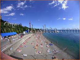 собственный песчано-галечный оборудованный (навесы, лежаки), в 350 м от санатория.