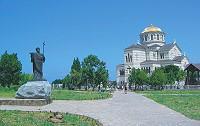 Севастополь также известен архитектурными произведениями: Графской пристанью, Владимирским Собором на Центральном Холме - усыпальницей героев первой обороны города: адмиралов Лазарева М.П., Корнилова В.А., Нахимова П.С., Истомина В.И.; Мемориалом обороны Севастополя 1941-1942 г.г. На Матросском бульваре установлен первый памятник Севастополя - бригу "Меркурий" и его командиру А.И. Казарскому. На территории Херсонеса открыт отреставрированный собор Святого Владимира, построенный, по преданию на месте крещения князя Владимира - вдохновителя Крещения Руси.